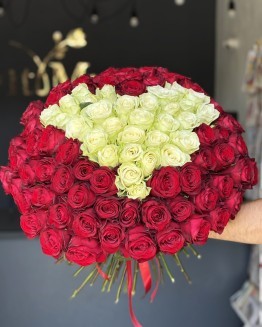 101 біла та рожева троянда