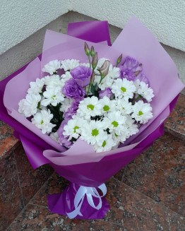 Букет хризантем з еустомами