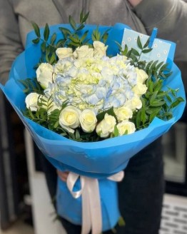 15 білих троянд з гортензією